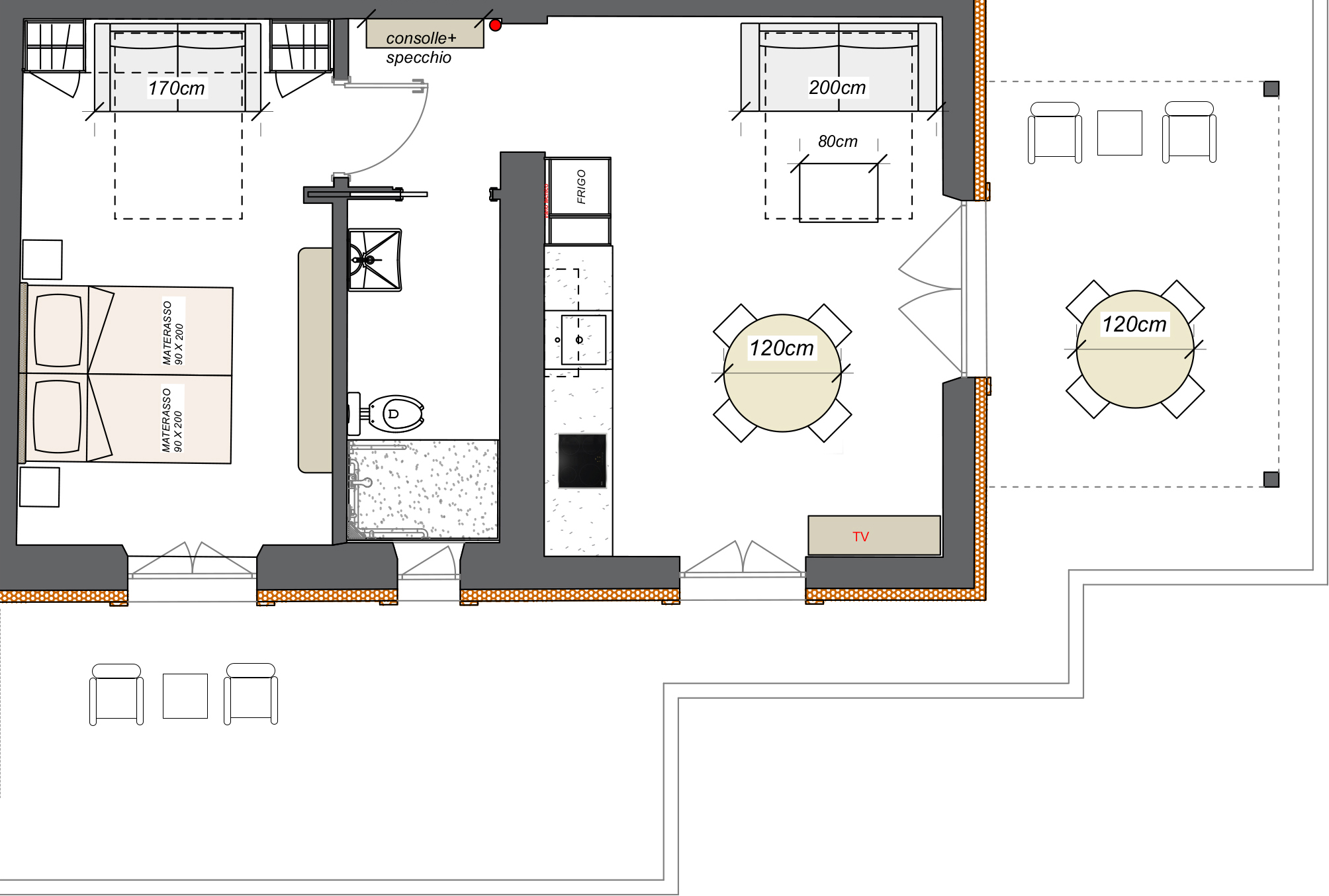Libeccio ist ein Ort der Ruhe im Erdgeschoss des Country Resort Terre dei Ghelfi. Die privilegierte Lage sorgt für durchgehend natürliches Licht und ein tiefes Gefühl der Stille.